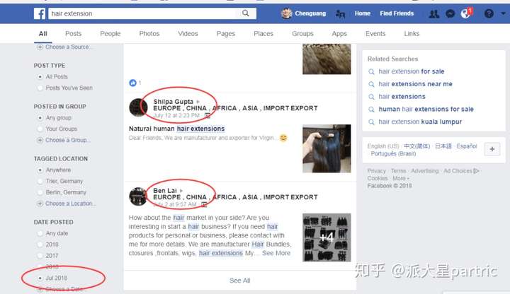 采用谷歌搜索语法 site:http://facebook.com "k likes" "hair extension" ,产品词可以替换,k代表的是几千,采用完全匹配的方式。likes可以换成comments,share等,k可以换成m,当然还可以使用其他的google搜索语法,比如inurl:videos,专门查找视频帖子。