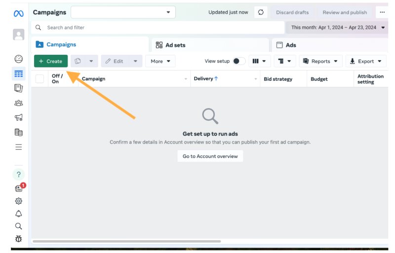 登录广告管理器后,您将看到您的信息中心。要创建新的广告系列、广告组或广告,请点击“创建”按钮。