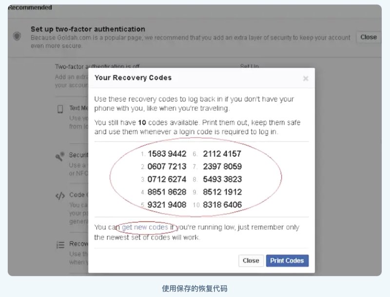 如果您保存了这些代码,则可以使用其中任何代码登录您的 Facebook 帐户。您可以输入这些备用代码,就像输入通过 2FA 在手机上收到的代码一样。